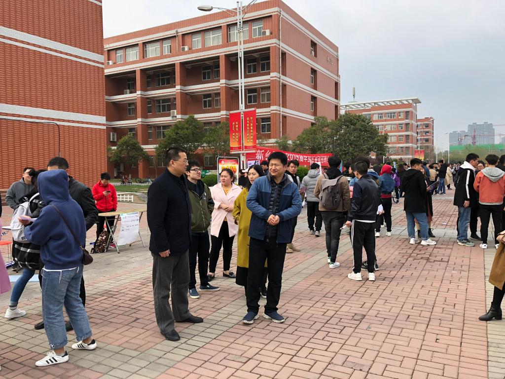 2019年4月9日下午14:00整,我院承办的2019届毕业生春季招聘会在A14号楼东门拉开了帷幕。我院党总支书记李文波、党总支副书记汤沛、团总支书记孟一以及学院全体辅导员纷纷莅临本次招聘会现场。