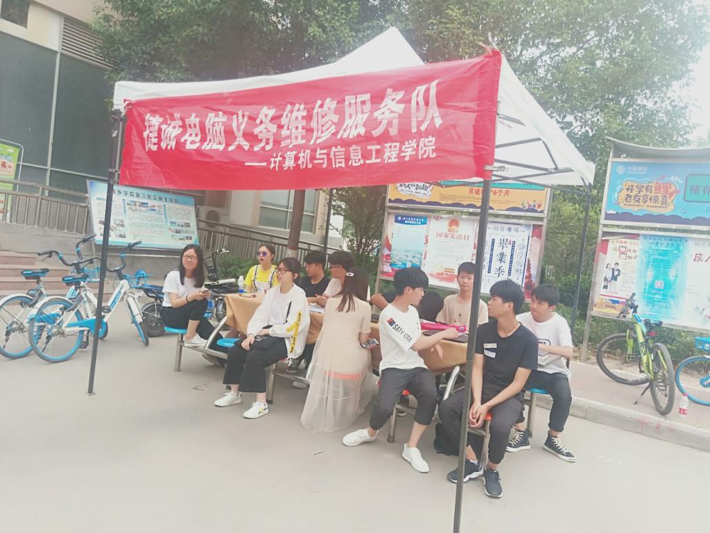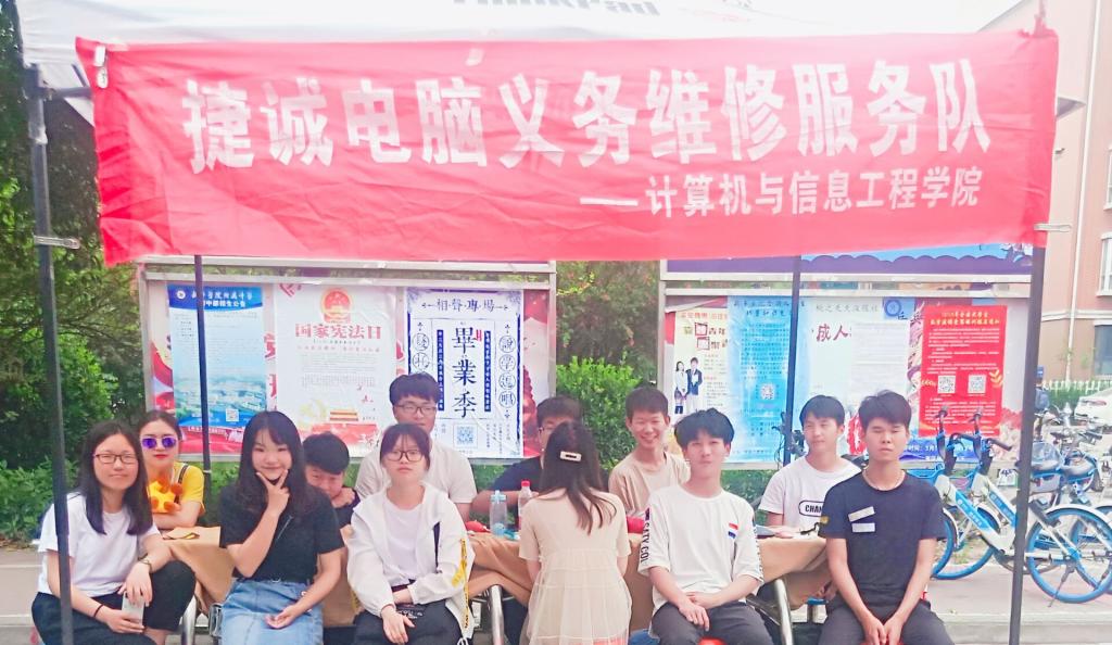 为了能更好的帮助同学们解决在使用电脑中遇到的问题,让大学生更好的了解有关电脑方面的知识,我院捷诚义务修服务队于5月18日在东西区餐厅门口举行了电脑维修服务活动。