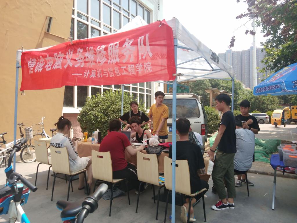 时值热夏,太阳tyc151cc也充斥着燥热的气氛,热风吹过,太阳高挂在头顶上,人微少。但我院“捷诚义务维修服务队” 的各位志愿者们秉承着服务师生的宗旨,不畏骄阳于5月25日上午如期到达东西区餐厅,为大家竭诚服务,解决各种电脑问题。