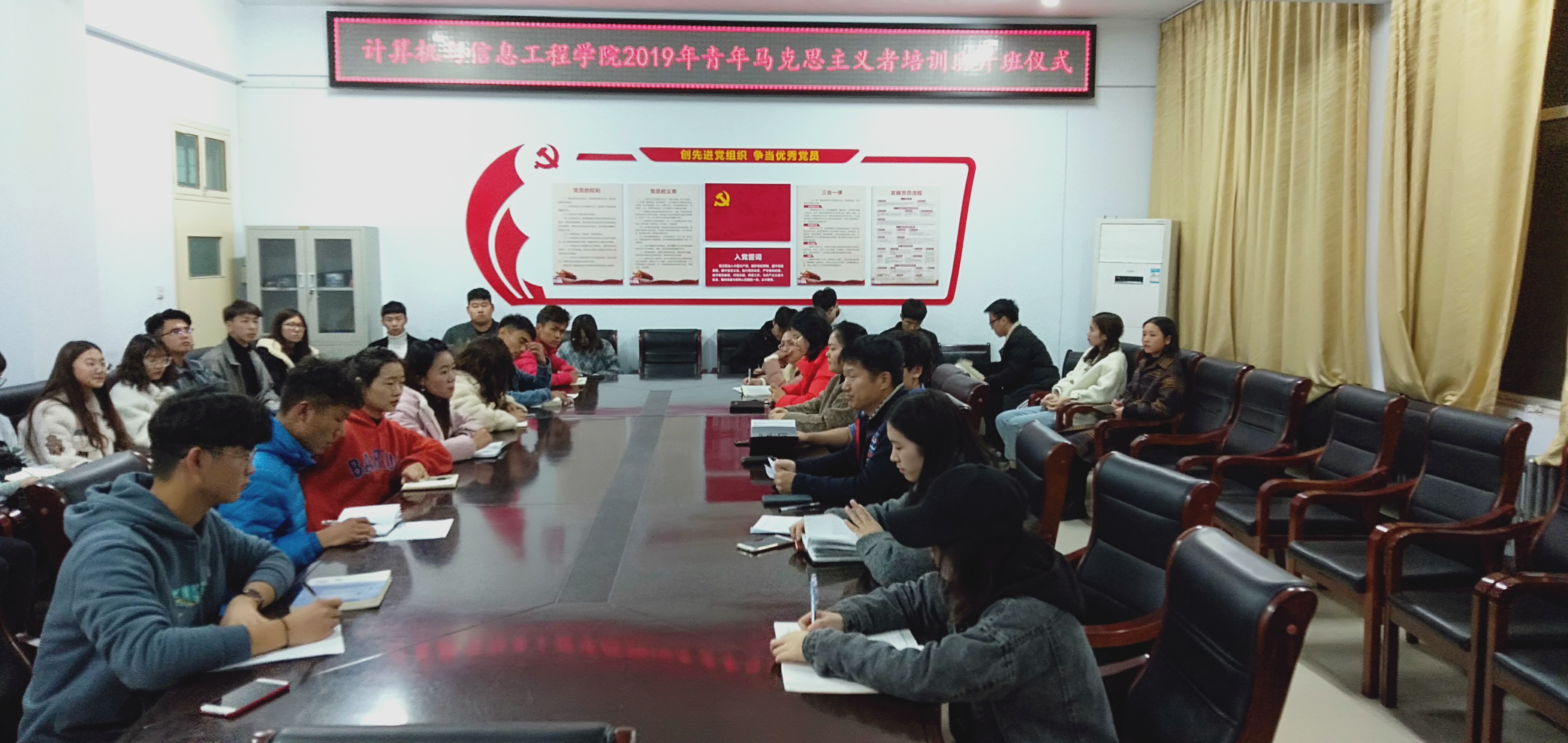 根据校团委“青年马克思主义者培养工程”的整体要求,为培育一批有理想、有本领、有担当、立场坚定的青年马克思主义者,我院开设第一期青年马克思主义者培训班。并于11月18日晚上6:20在A14-221举行开班仪式暨开班第一课。党总支副书记汤沛、团总支书记孟一、各年级辅导员和“青马班”全体学员参加了开班仪式。