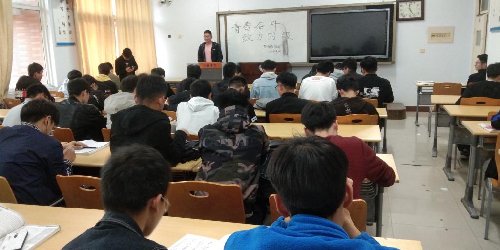英语考试四级即将到来,为了让每位同学更好冲刺四级考试,特举办英语考试心得交流会。我院18级物联网1班团支部11月13日在A14-519举办“冲刺四级”英语考试心得交流会。