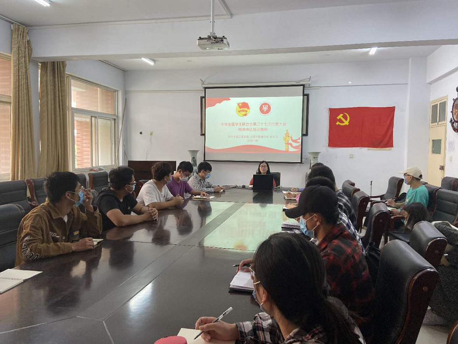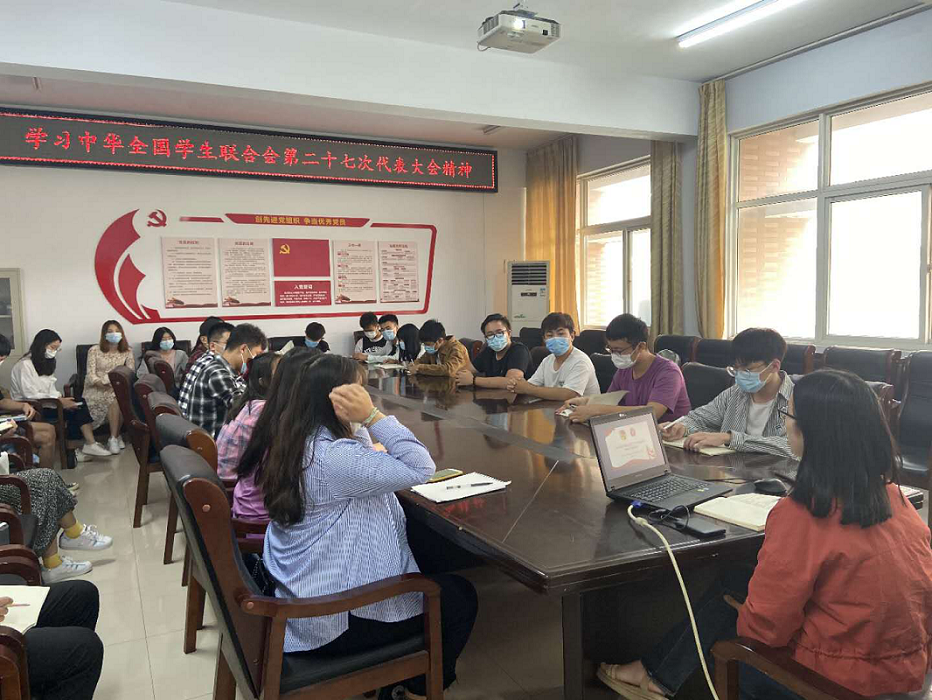 青春理想,青春活力,青春奋斗,是中国精神和中国力量的所在。全国学联二十七大是在党领导全国各族人民即将夺取全面建成小康社会伟大胜利,开启第二个百年奋斗目标新征程历史交汇之年召开的一次青春盛会,意义重大。为深入学习会议精神,我院学生会于9月24日在A–14号楼0221会议室组织《学习全国学联第二十七次代表大会精神》会议,此次活动由学院分团委书记孟一老师带领太阳集团tyc151cc学生会主席团和学生会各部门部长共同学习。