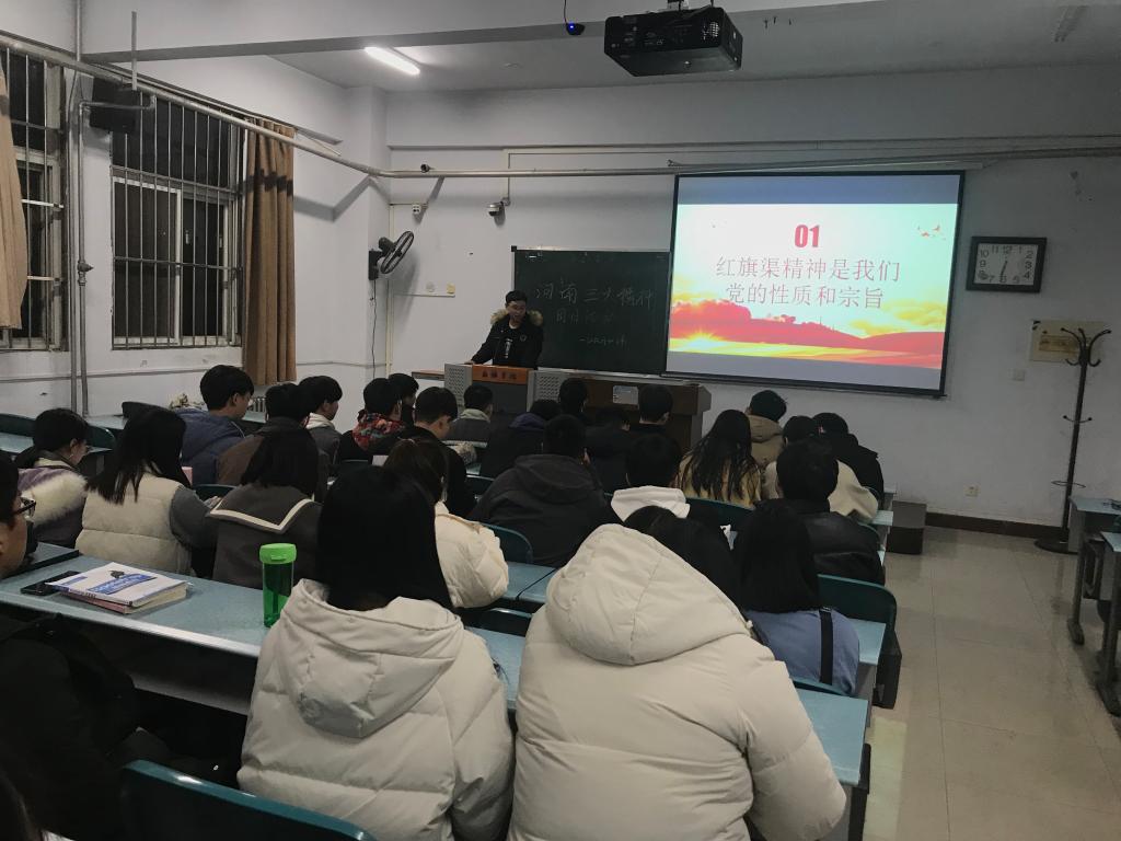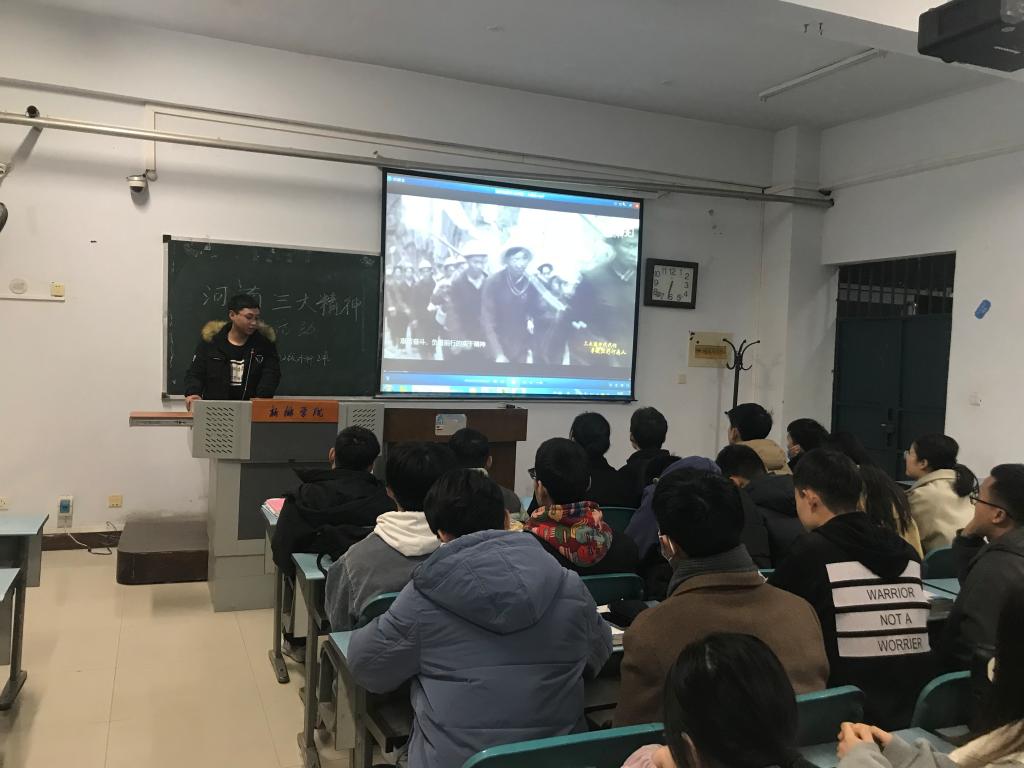 此次活动由组织委员穆晓瑛同学主持。活动伊始,穆晓瑛同学对此次活动进行介绍,带领大家了解学习以焦裕禄精神、红旗渠精神、愚公移山精神为代表的“河南三大精神”。接着,余海航同学通过PPT和视频两种方式深入浅出地介绍了“三大精神”,坚定了同学们求真务实、开拓进取的理念,不辜负总书记对青年提出的“爱国、励志、求真、力行”的殷切期望。活动最后,同学们纷纷举手发言,表示了自己对三大精神内涵有了更深入的了解,在日后的学习工作中,要坚持信仰,拒绝诱惑,担起责任,用实际行动去践行“三大精神”。