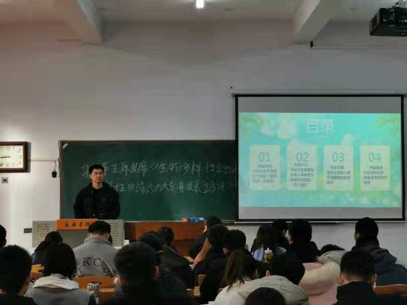 此次团日活动由团支书黄培娟进行主持。活动伊始,团支书黄培娟通过播放有关“习近平总书记出席《生物多样性公约》第十五次缔约方大会领导人峰会并发表主旨讲话”的文章讲解。随后,班长陶博斌就第一条“以生态文明建设为引领,协调人与自然关系。”人与自然之间的关系如何协调问题进行讨论,经过一番激烈的讨论后,李祥顺同学作为学生代表进行发言,并指出自然界是人类存在和发展的前提条件,人与自然之间关系的不和谐与日俱增,努力协调好人与自然的关系,要贯彻以人为本的科学发展观。团日活动最后,团支书黄培娟对此次团日活动进行总结,并倡导同学们以昂扬的精神风貌、进取的人生态度,接过先辈的旗帜,走向民族复兴的新征程上。