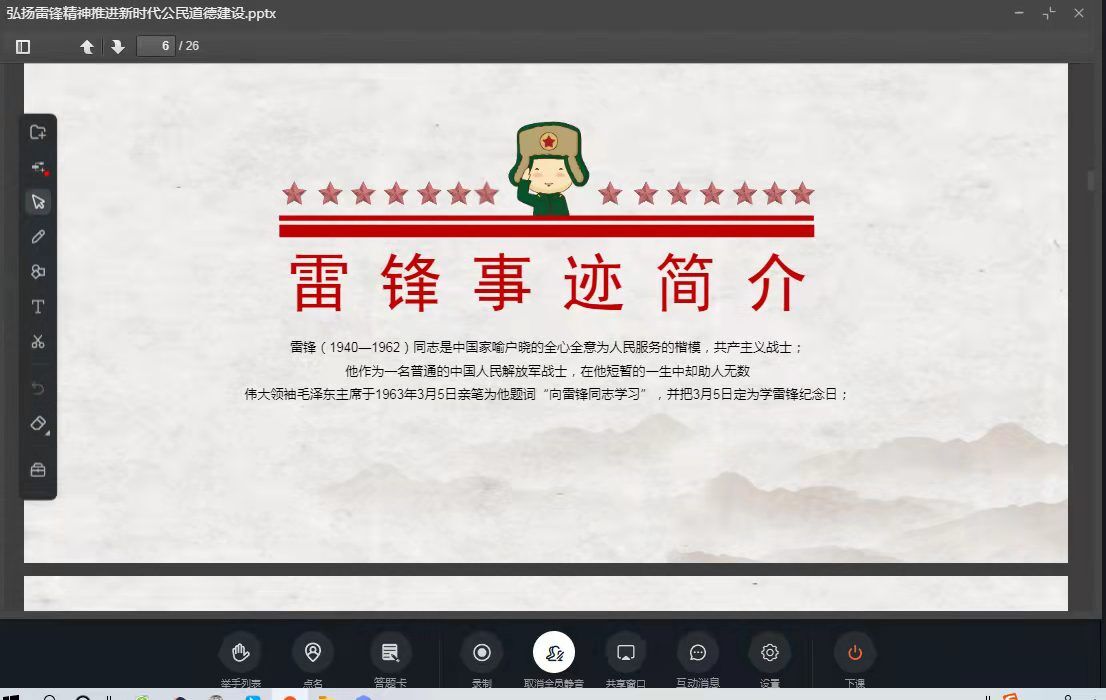 为进一步弘扬雷锋精神,正确认识雷锋精神的实质与新时期的深刻内涵。太阳集团tyc151cc21级软件工程(专升本)三班于3月29日下午15点召开线上“弘扬雷锋精神,推进新时代公民道德建设”主题团日活动。