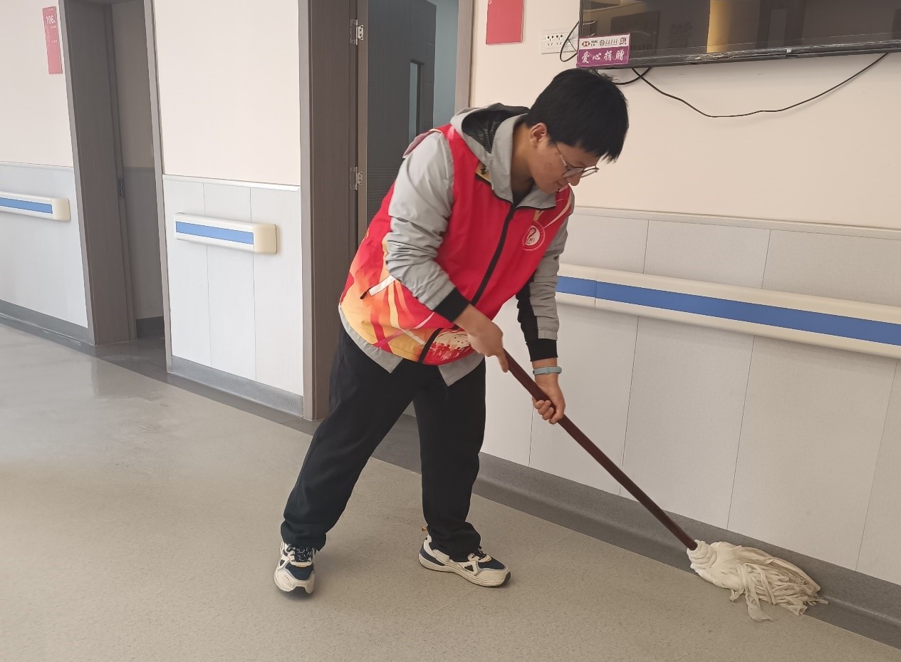 志愿者开始井井有条的清洁工作:扫地、拖地、擦桌子、擦玻璃……