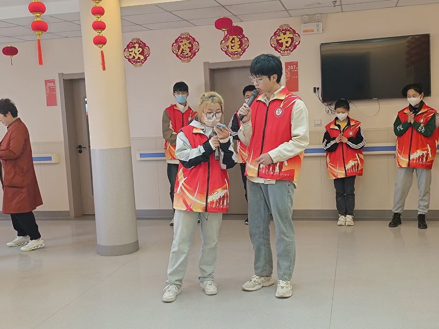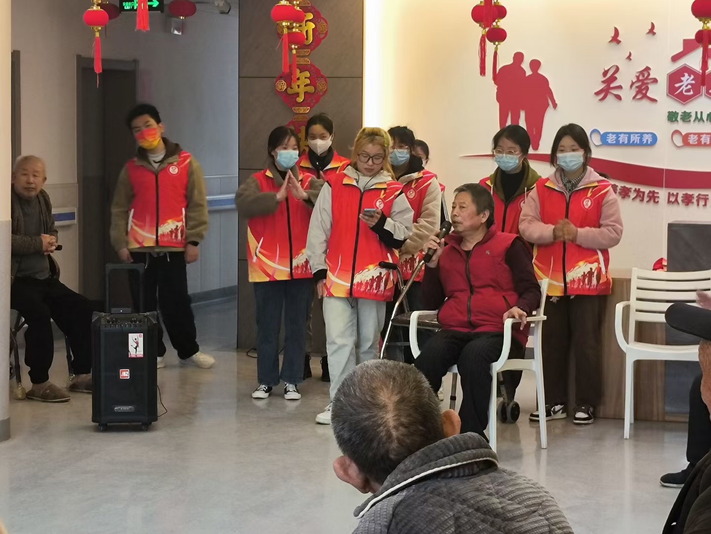 志愿者们为老人们带来精彩的节目,丰富老年人生活。院长还带领志愿者们学习了24步舞,并用葫芦丝吹奏音乐,活动现场气氛热烈,老人们喜笑颜开。