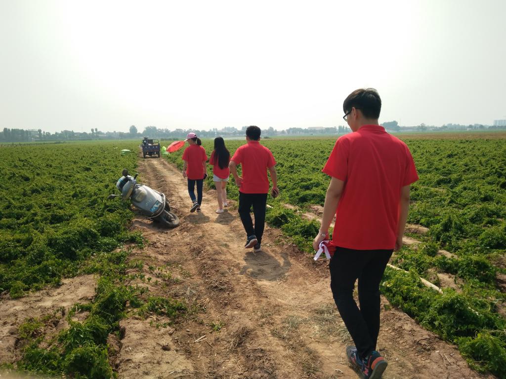 6月27日,团队一行人走访了温县南渠河村部分农户,了解当地特色农产品山药的种植、收获、销售情况及销售渠道等;同时利用宣传页、调查问卷等形式了解了农户新媒体应用情况以及在种植山药的过程中可能会遇到的问题。通过与农户交流,了解到农户对山药的销售主要依靠传统的摊售,偶尔也会通过网络售卖,缺乏农业与微博、微信等现代媒体结合应用的意识和能力。团队成员意识到这个问题,查找资料后,决定加大农户们对微信、微博的使用力度,使农户们对日常媒体的使用更加轻车熟路,同时也在百度、天涯、搜狗等各大问答网站上进行推广。接下来队员将教会农户使用微博微信以及如何更新微信公众号里关于农产品的信息,从而利用网络拓展销售渠道,实现农户与市场对接,形成网络覆盖链,进一步帮助农民朋友增收创收,带动当地农业的发展,推动当地的经济建设。