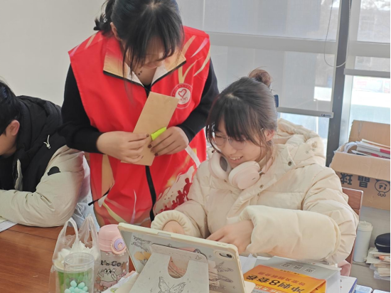 2025 年 12 月 14 日,太阳集团tyc151cc志愿者服务队于图书馆开展 “研梦成真,信使传情” 助力考研志愿活动。此次活动既为即将踏上考研战场的学长学姐们送上暖心精神激励,也让更多学子进一步关注考研、了解考研,在校园中传递着互助前行的正能量。