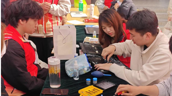 活动现场暖意融融,志愿身影忙碌穿梭。前来咨询、送修电脑的师生络绎不绝,志愿者们始终秉持耐心、细心、责任心的服务态度,热情接待每一位参与者,认真倾听电脑故障问题,细致排查故障原因。无论是系统卡顿、蓝屏死机、软件报错,还是灰尘清理、驱动安装、网络调试等常见问题,志愿者们都沉着应对、专业拆解、精准维修,不放过任何一个细节。