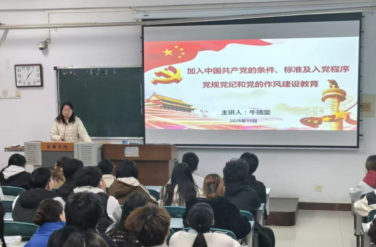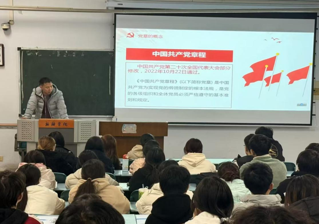 本次党课培训共六个主题,首先郭桂花以 中国特色社会主义民族宗教理论知识 为授课主题。她系统讲解了民族平等、团结、互助、和谐的原则与宗教信仰自由政策边界帮助入党积极分子系统掌握中国特色社会主义民族宗教理论核心要义强化维护国家统一、民族团结的责任担当 接着,黄中杰主讲《中国共产党章程》(2022 年版),带领学员逐章领会党章核心要义,明确党员的权利与义务。王珍珍围绕《党的辉煌历程与基本经验》(含党的统一战线知识)授课,通过回顾党的奋斗历程,让学员深刻感悟百年大党的历史智慧与实践经验。谭敬豪主讲《习近平新时代中国特色社会主义思想及党的二十大精神和二十届三中全会精神》带领学员深入解读习近平新时代中国特色社会主义思想及党的二十大和二十届二中、三中、四中全会精神,把握新时代党的理论创新成果。然后,牛靖雯加入中国共产党的条件、标准及入党程序;党规党纪和党的作风建设教育》为主题展开详细讲解,明确入党条件与规范程序,深析党规党纪要求及作风建设要义引导学生树立正确的入党动机,以自身行动积极践行一名合格党员的标准