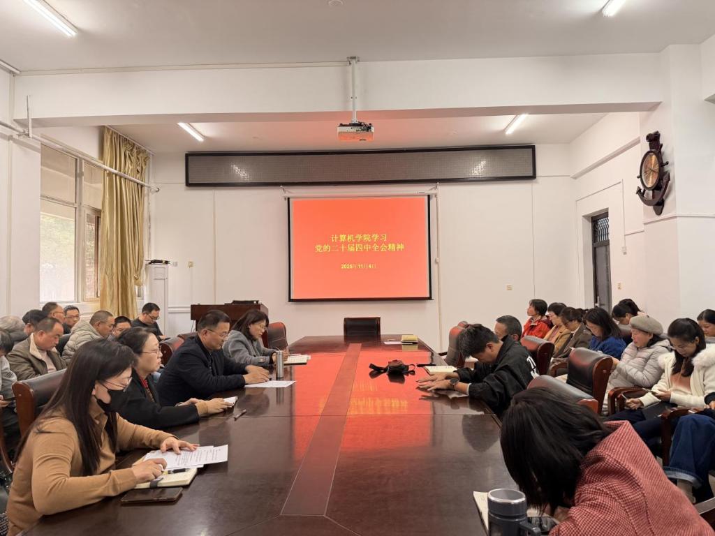 我院党委书记李文波强调,学习宣传贯彻党的二十届四中全会精神是当前和今后一个时期的重要政治任务。要求全院教职工要提高政治站位,深刻领会全会精神的丰富内涵与核心要义,自觉将思想和行动统一到党中央决策部署上来;要紧密结合学院发展实际,将学习成果转化为推动学院学科建设、人才培养、科学创新和社会服务等各项工作的强大动力,着力培养担当民族复兴大任的时代新人,为加快建设教育强国贡献智慧和力量。