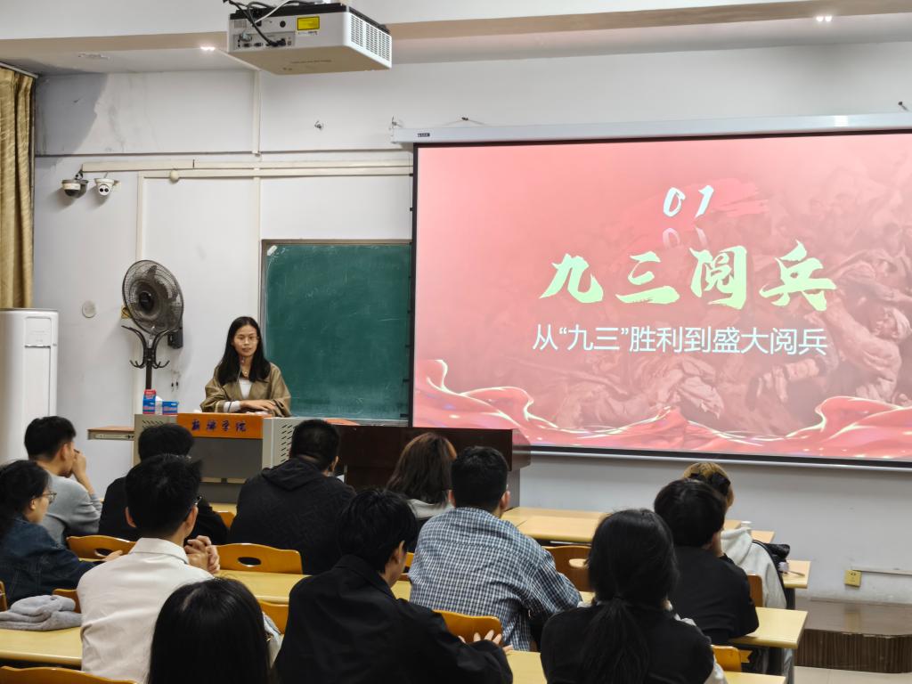 会议伊始,谭敬豪老师以时间轴为主线,清晰梳理了从抗战胜利到举行本次“九三”阅兵的历史脉络,详细讲解了将9月3日确立为中国人民抗日战争胜利纪念日的由来,使同学们对阅兵活动有了更为全面和深刻的认识。接着,张媛媛回顾历史、诠释精神,号召青年党员铭记历史、担当使命。冯展博则通过分享阅兵观感,表达了对“国之重器”的自豪与对强军成就的赞美。
