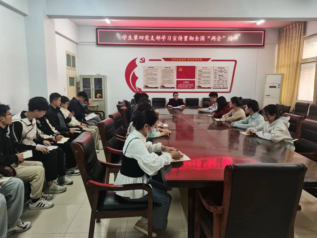 3月14日下午,我院学生第四党支部全体党员在A14-221会议室学习2023年全国两会精神。