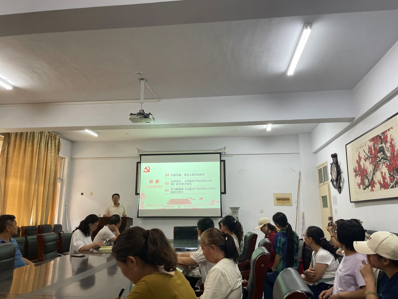 李文波书记以《以史为鉴 以纪正行——为新征程推进全面从严治党提供坚强纪律保障》为题讲授党纪学习教育党课。他结合《中国共产党纪律处分条例》(以下简称《条例》)围绕以史为鉴,党史上的纪律教育、以纪正行,《中国共产党纪律处分条例》历次修订情况和学习最新版《中国共产党纪律处分条例》的修订意义等三个方面进行了讲解。我们党是靠革命理想和铁的纪律组织起来的马克思主义政党,纪律严明是党的光荣传统和独特优势。中国共产党作为百年大党,在革命、建设、改革的各个历史时期特别是在重要历史节点,高度重视并适时开展对全党的纪律教育,积累了丰富经验,保证了我们党不断从胜利走向胜利。李书记要求大家要原原本本、逐章逐条学习领会《条例》,要在日常生活中遵守《条例》、贯彻《条例》,日化于心、外化与行。