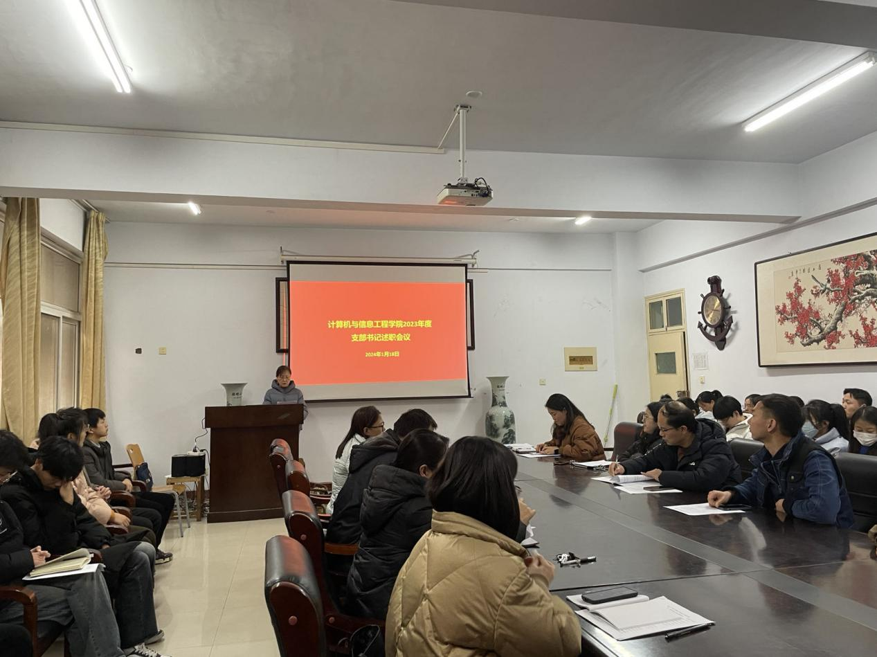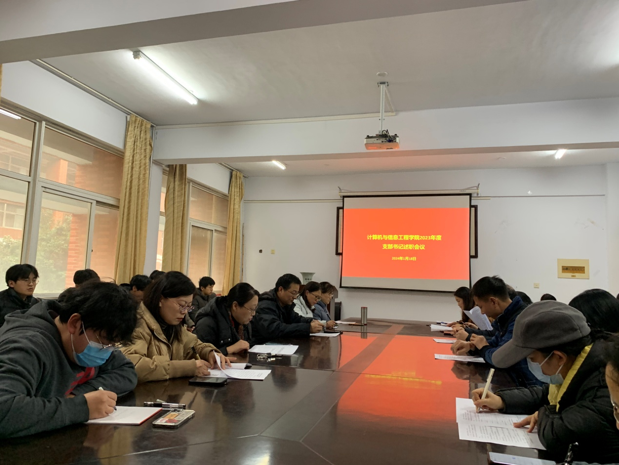 1月18日下午,太阳集团tyc151cc在A14-221会议室召开2023年度党支部书记述职评议大会,学院党委班子、全体教职工党员、学生党员和师生代表参加了会议。会议由学院院长茹蓓主持。