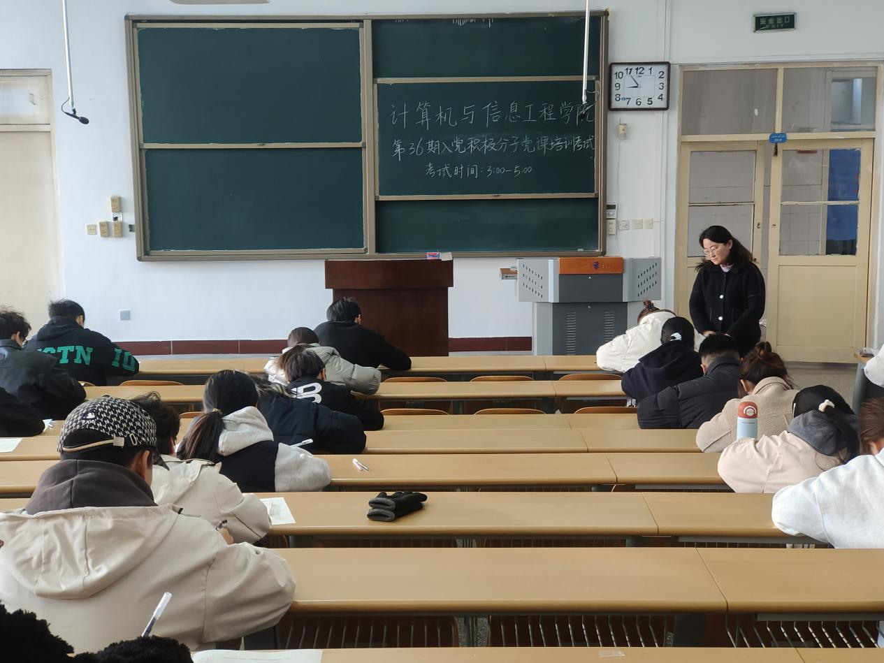 第36期入党积极分子党课结业考试,本期全体学员参加,我院学工办主任兼组织员牛靖雯监考。