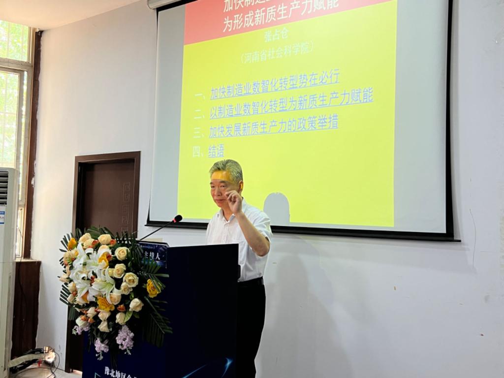 张占仓教授以《加快制造业数智化转型为形成新质生产力赋能》为题阐述了加快数智化转型势在必行,强调了数智化为新质生产力赋能的重要地位,讲解了加快发展新质生产力的政策举措: