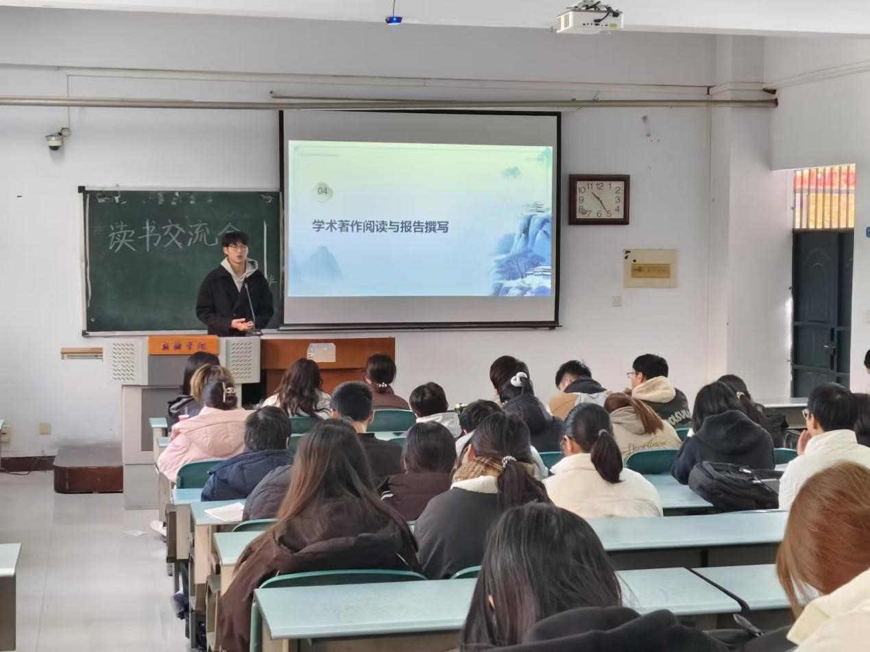 活动伊始,辅导员郭莎莎进行了热情洋溢的开场致辞,强调了读书在学风建设和个人成长中的重要性。郭莎莎老师鼓励同学们多读书、读好书,通过阅读来拓宽视野、增长知识、陶冶情操,并通过分享交流提升班级学风水平和班级凝聚力。随后,学习委员王梓菁声情并茂地分享了有效的读书方法。在自由交流环节,同学们纷纷上台,与大家分享了自己最近阅读的书籍和心得体会。他们有的介绍了经典文学作品中的深刻内涵;有的分享了科普读物中的新奇知识和有趣现象;还有的则谈到了自己通过阅读所获得的人生感悟和心灵启迪。