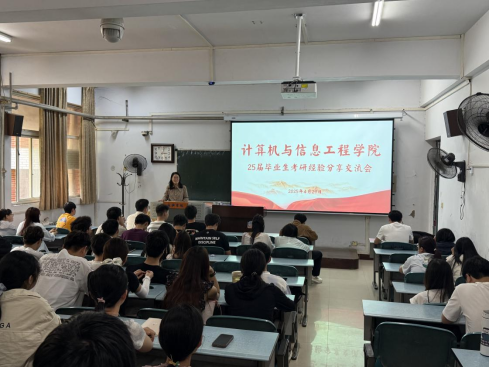 4月29日下午,学院在A14-128教室,成功举办了2025届毕业生考研经验分享交流会。此次活动吸引了各年级学生踊跃参加,现场座无虚席。