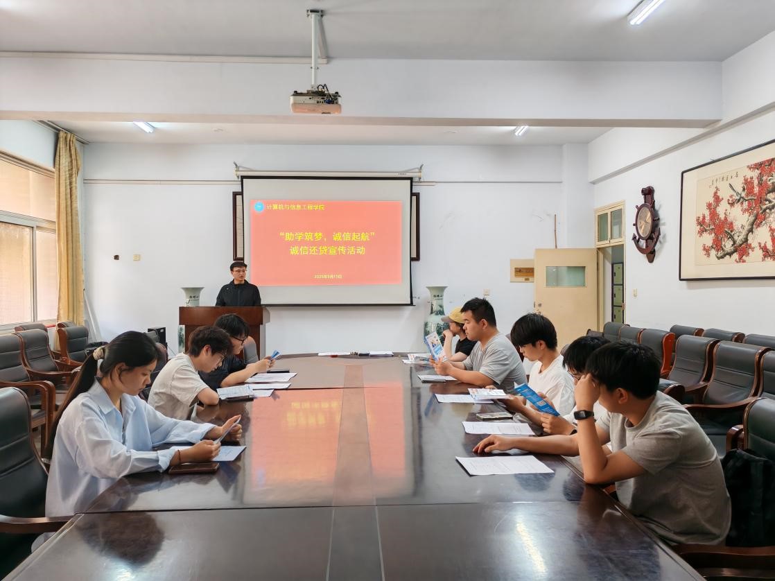 5月15日,太阳集团tyc151cc在A14-221开展“助学筑梦,诚信起航”诚信还贷宣传活动。学院2025届毕业生代表参加本次活动。活动由学院资助专管员杨老师主持。
