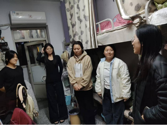 为深入贯彻落实立德树人根本任务,切实了解学生思想动态、学习生活状况,及时解决学生实际需求,近日,我院组织全体学工人员开展“下沉宿舍一线,心系学生成长”走访活动。在学院领导统一安排下,院分团委书记孟一、院学工办主任牛靖雯以及各辅导员老师分组深入学生宿舍,与同学们面对面交流、心贴心沟通,将育人关怀送到宿舍“最后一公里”。