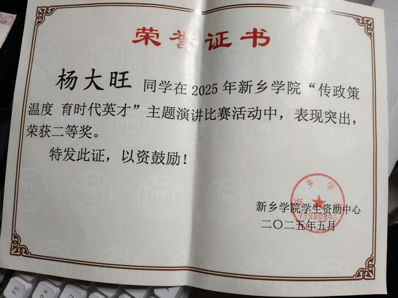 5月27日,我校“传政策温度,育时代英才”大学生主题演讲比赛圆满落幕。我院推荐刘芯汝、杨大旺2名学生参赛。比赛中,他们紧扣资助育人主题,结合个人成长经历,以真挚的情感和生动的语言,讲述了在国家资助政策关怀下励志成才的感人故事,充分展现了新时代青年感恩奋进、勇于担当的精神风貌。最终,两位同学均荣获二等奖的优异成绩。